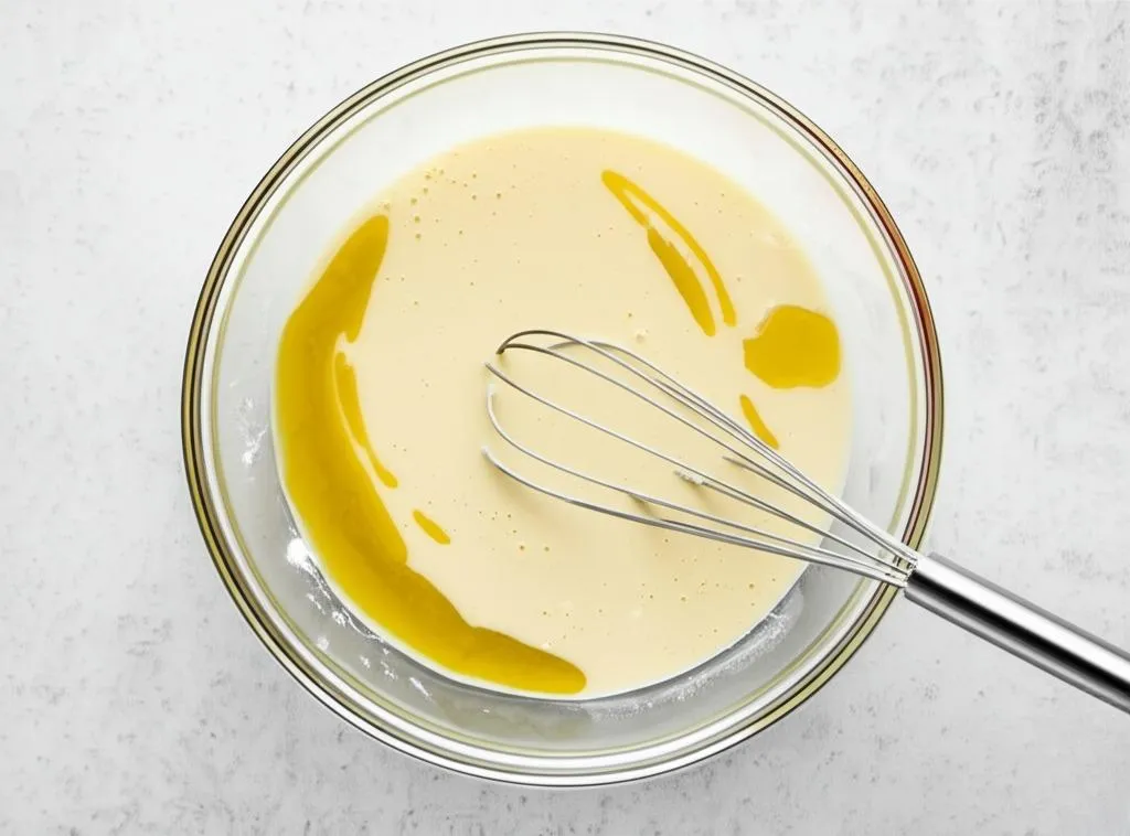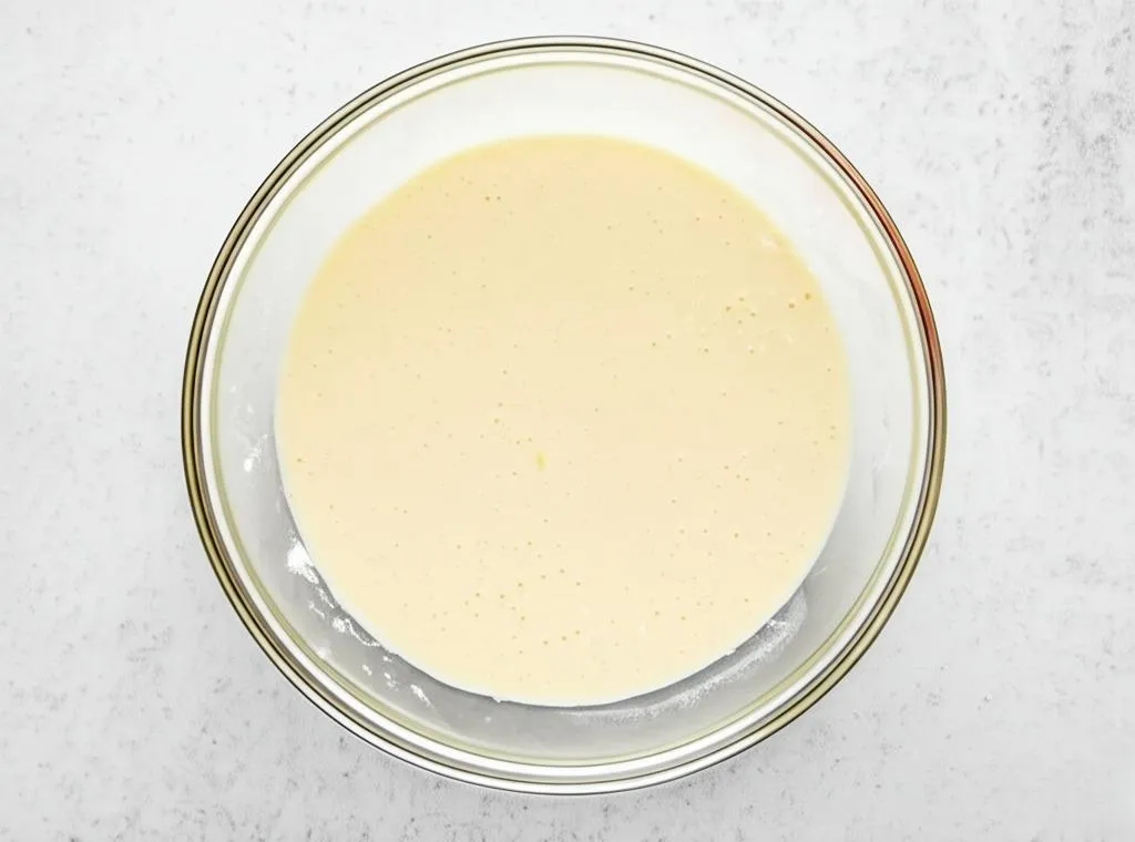 - Slowly pour in the whole milk, whisking continuously until the batter is smooth and lump-free.